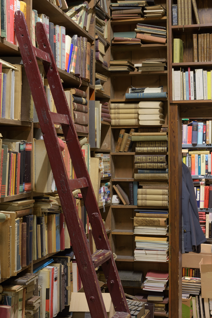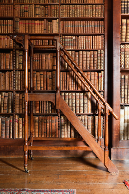 Bibliothèque ancienne avec livres anciens et échelle en bois