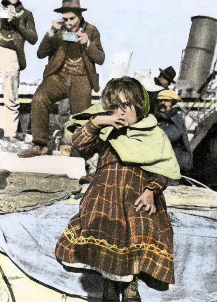 Enfants et adultes migrant en bateau au début du XXe siècle