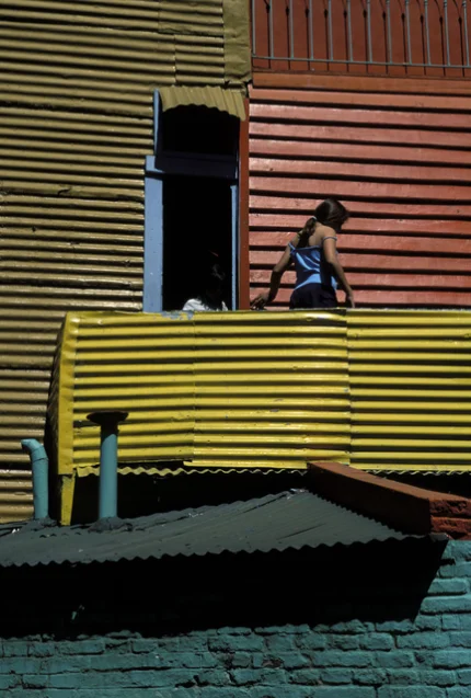 Enfant sur un balcon coloré