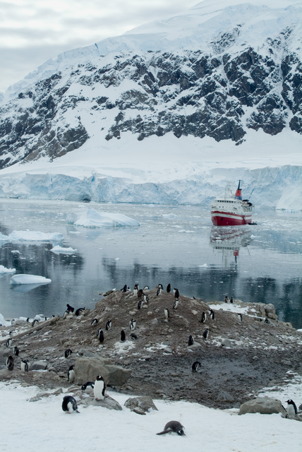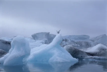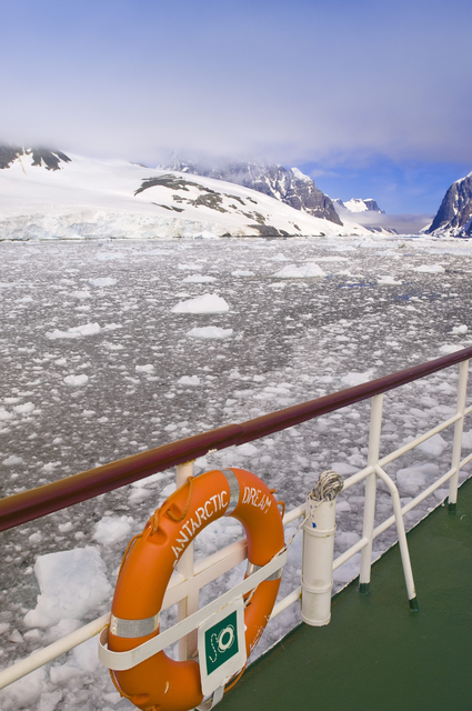 Paysage glacé avec bouée de sauvetage en Antarctique