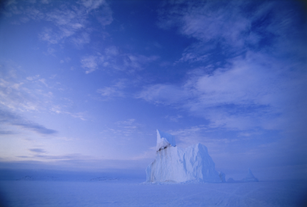 Iceberg géant sous un ciel bleu parsemé de nuages