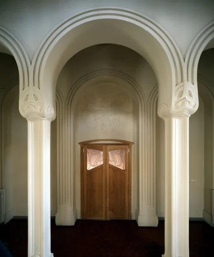 Porte en bois Art Nouveau avec arches ornementées