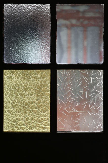 Vue à travers une fenêtre délabrée d’une structure historique.