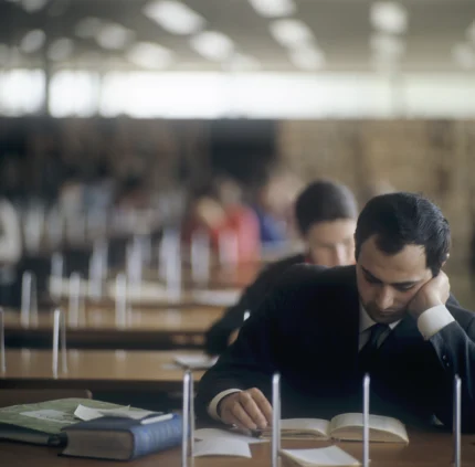 Homme lisant dans une bibliothèque