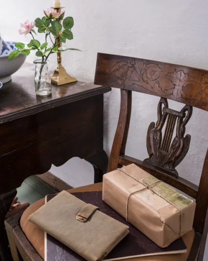 Bureau Vintage avec Téléphone Ancien, Livres et Tableau Nautique
