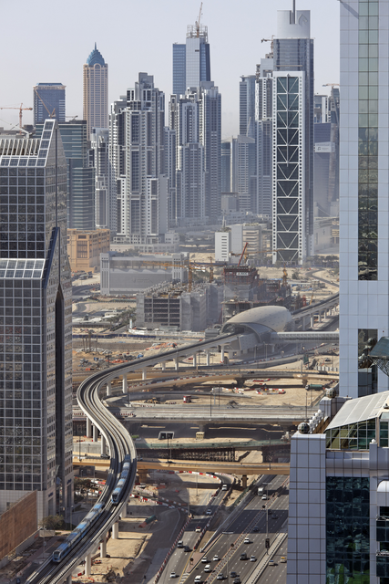 Vue Panoramique d’une Ville Moderne avec Métro Aérien