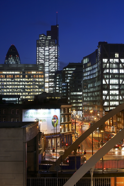 Gratte-ciels illuminés à Londres au crépuscule