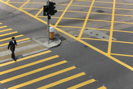 Homme traversant un passage piéton