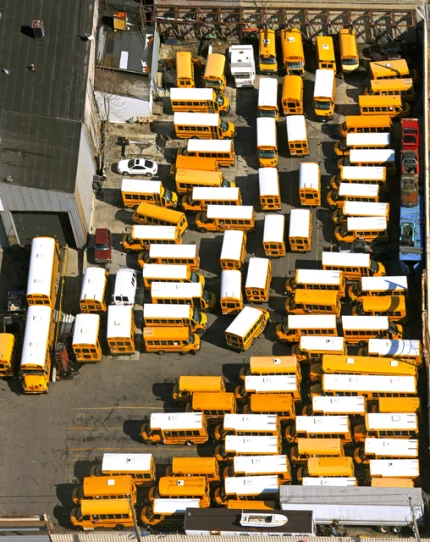 Jeune garçon regardant par la fenêtre d’un bus coloré