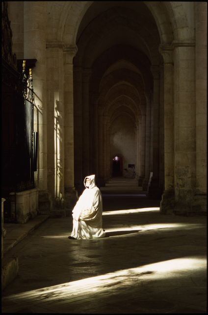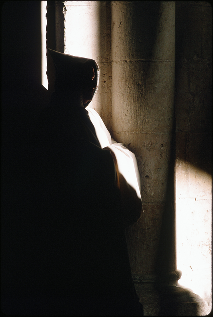 Moine en prière dans une église ancienne