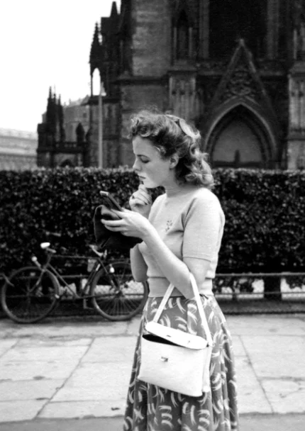 Femme lisant un livre devant une cathédrale