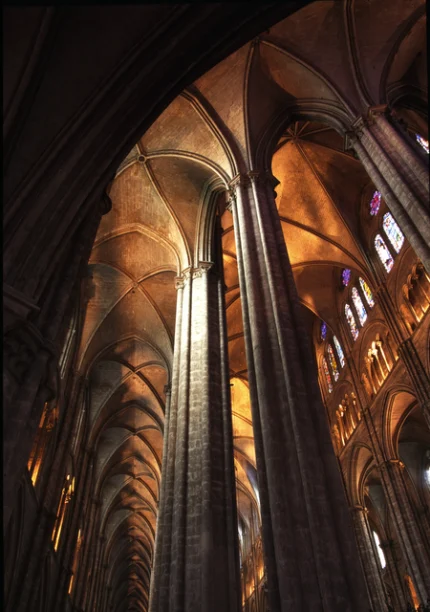Faisceau de lumière à l’intérieur d’une cathédrale gothique