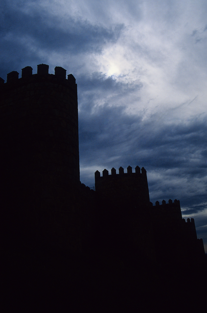 Ciel orageux au-dessus des murs d’un château médiéval