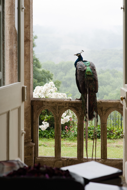 Paon majestueux sur une balustrade d’un château