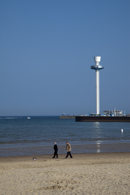 Promenade sur la plage avec vue sur la tour d’observation