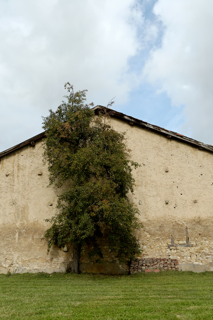 Arbre éclairé près d’une ancienne construction en bord de mer, au crépuscule