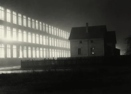 Maison Isolée Près d’un Bâtiment Illuminé la Nuit