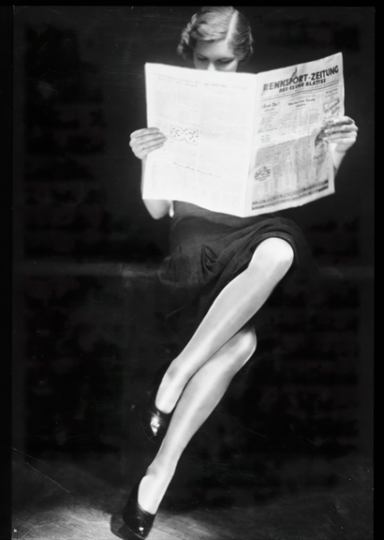 Femme lisant un journal portant des talons hauts