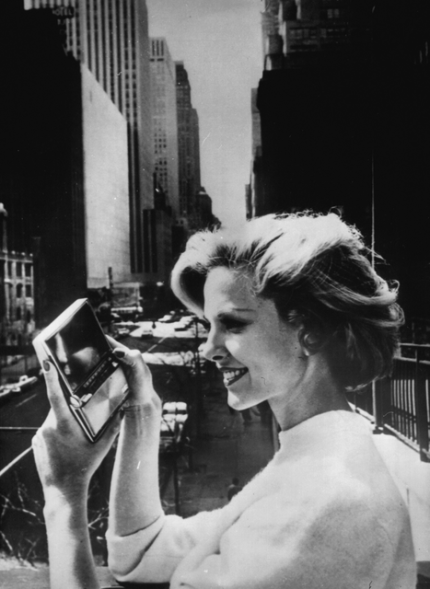 Femme regardant dans un miroir à main