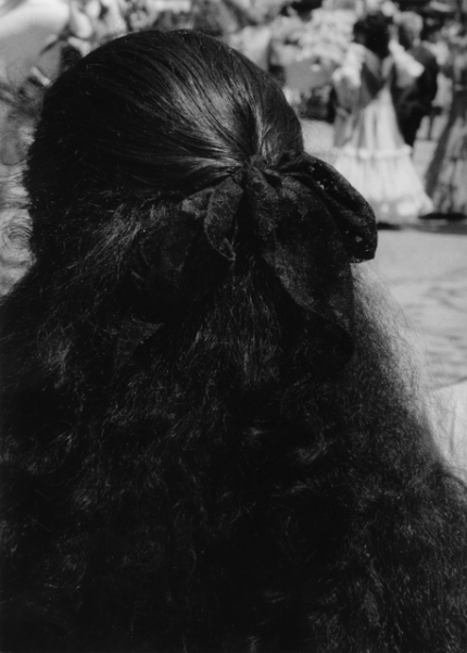 Cheveux longs avec ruban noir lors d’un événement en plein air