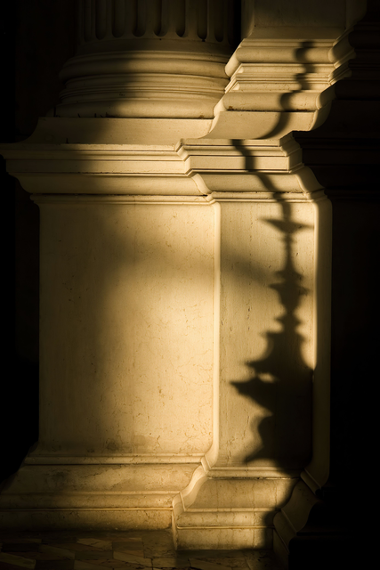 Ombres architecturales sur colonne en pierre