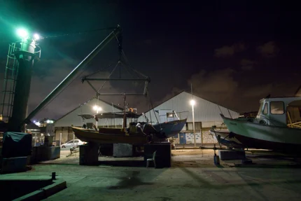 Grand Hangar Industriel avec Deux Hommes