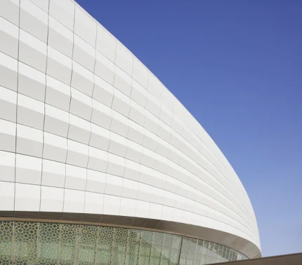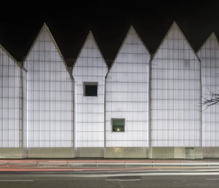 Façade moderne d’un bâtiment illuminé la nuit