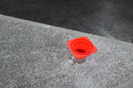 Cône de signalisation rouge sur trottoir en béton