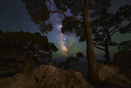 Voie Lactée au-dessus d’une Forêt Nocturne