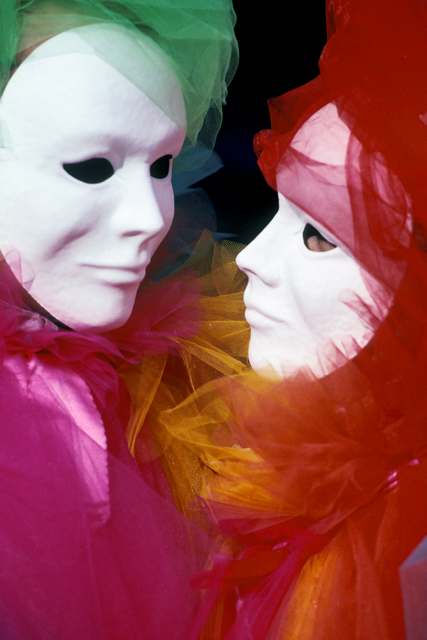 Masques et tulle colorés en face à face
