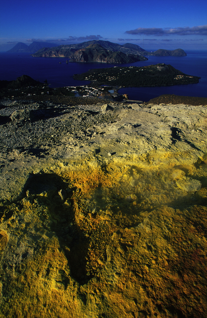 Vue panoramique d’îles volcaniques avec sol sulfurique