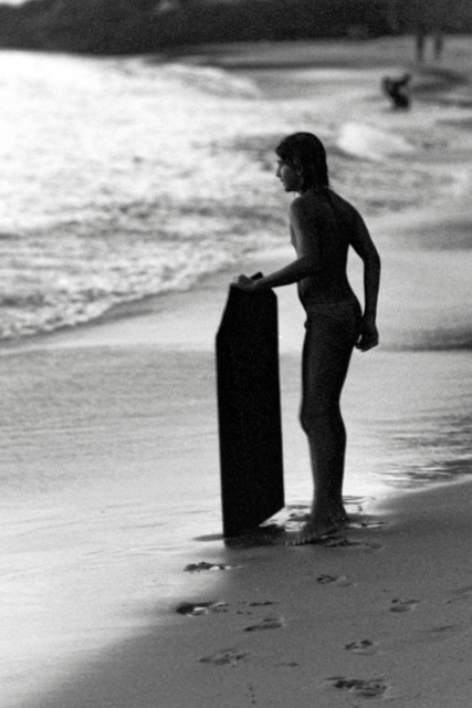 Personne avec vélo sur un pont en bois au coucher du soleil