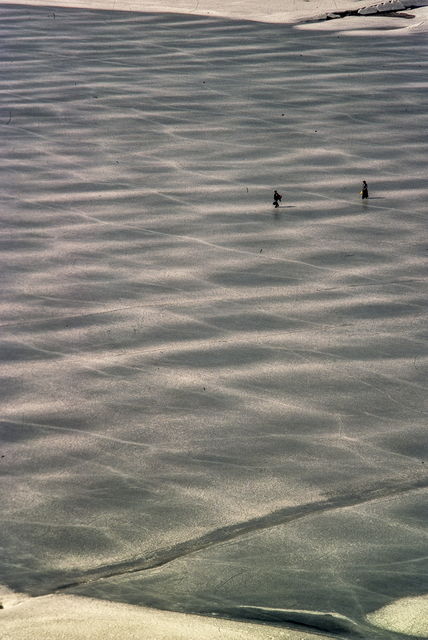 Randonneurs sur paysage glacé
