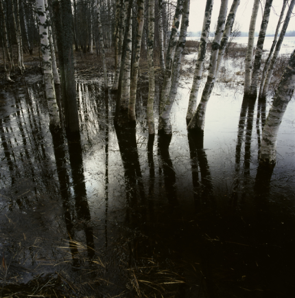 Forêt de bouleaux inondée