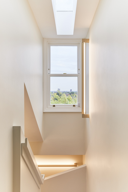 Escalier intérieur moderne avec fenêtre cintrée