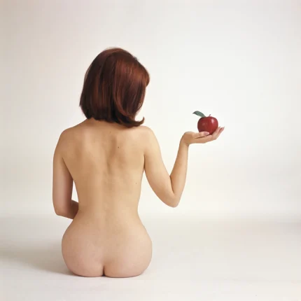 Femme tenant une pomme rouge
