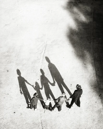 Groupe d’enfants en cercle, ombres projetées au sol