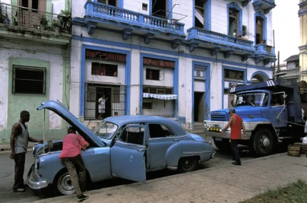 Rue d’une ville Cubaine avec voiture vintage