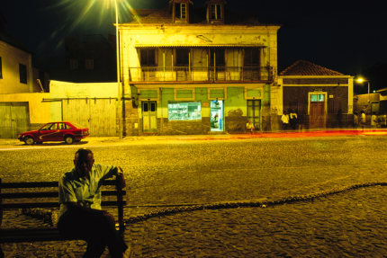 Rue nocturne illuminée dans un quartier historique