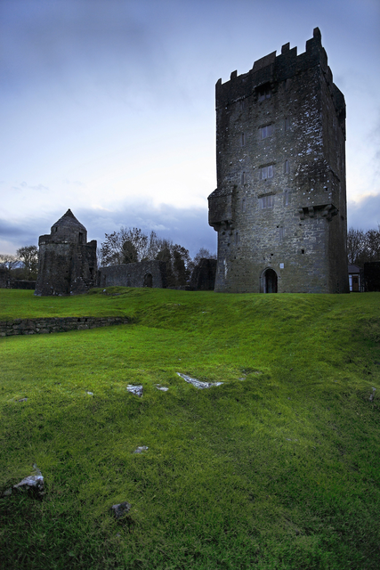 Vieille Tour de Château en Pierre au Crépuscule