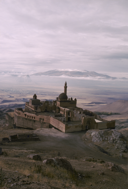 Vue panoramique d’une forteresse historique dans un paysage montagneux