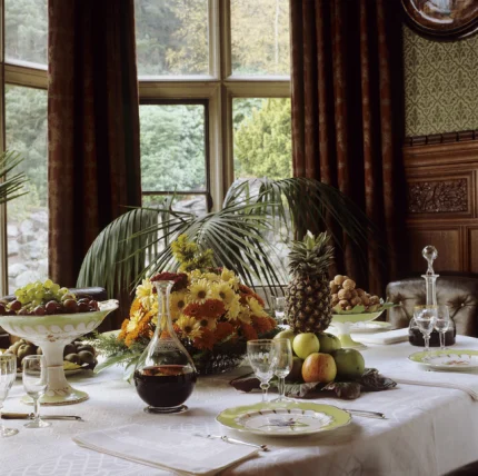 Intérieur avec Table Richement Garnie de Fruits et Fleurs