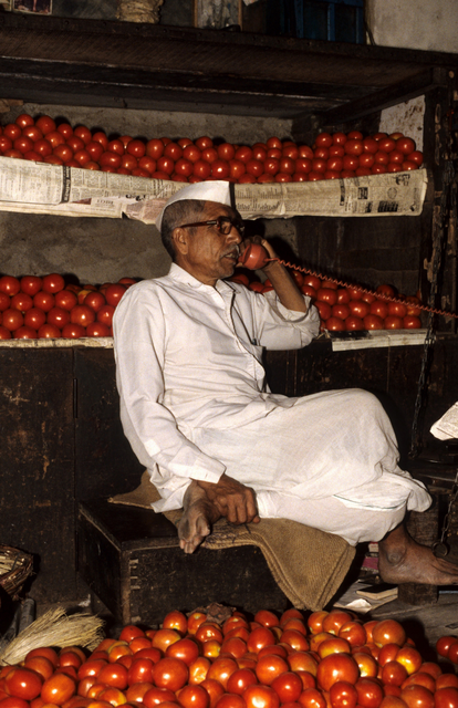 Marchand de tomates au téléphone.