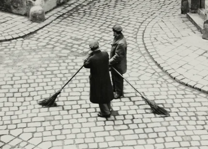 Balayeurs sur rue pavée