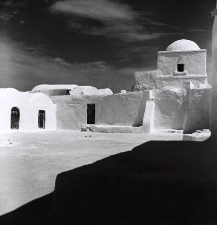 Architecture traditionnelle en plâtre blanc sous un ciel nuageux