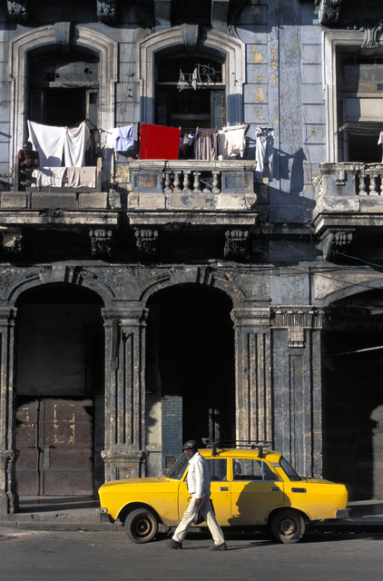 Vie quotidienne devant un immeuble ancien avec voiture jaune