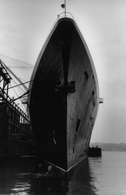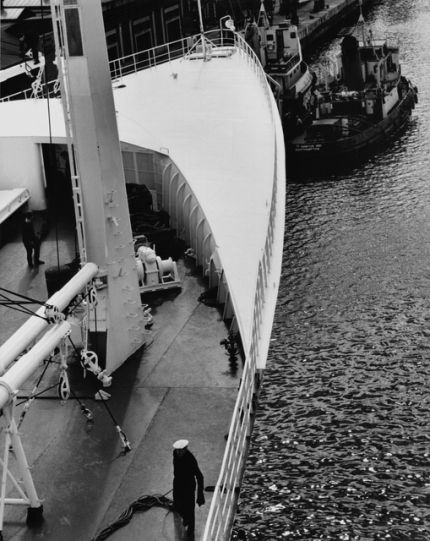 Bateau de croisière au quai vu de face