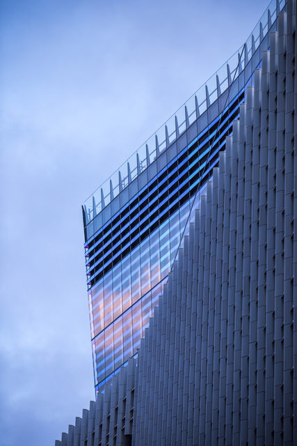 Architecture moderne avec représentation géométrique au crépuscule