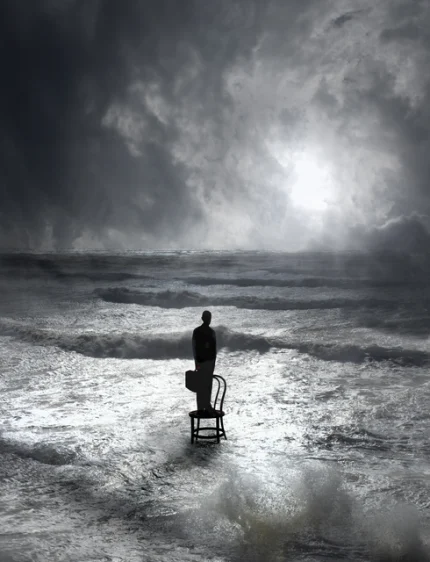 Homme sur une chaise dans l’océan