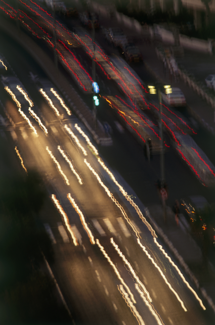 Trafic nocturne urbain avec traînées de lumières
